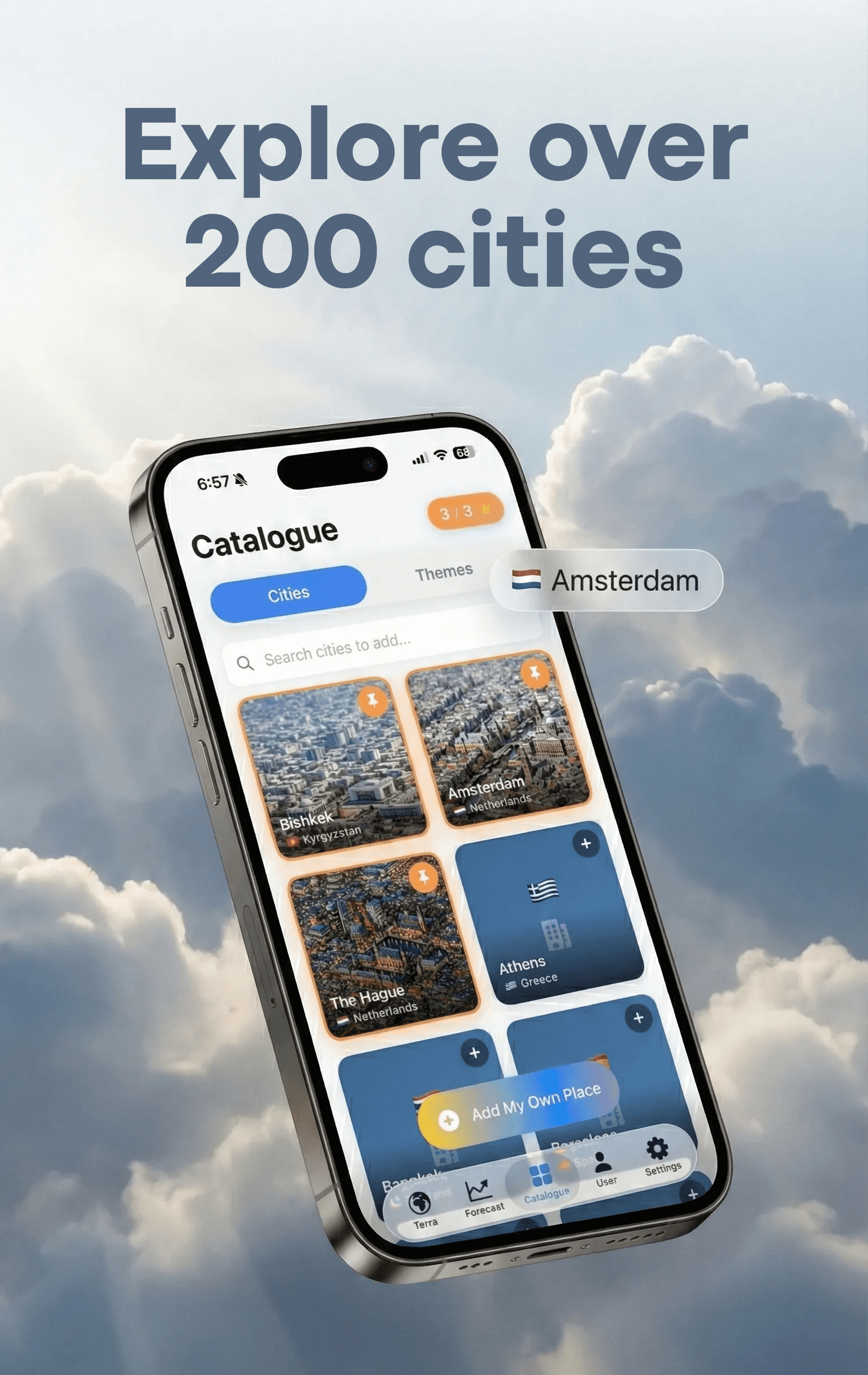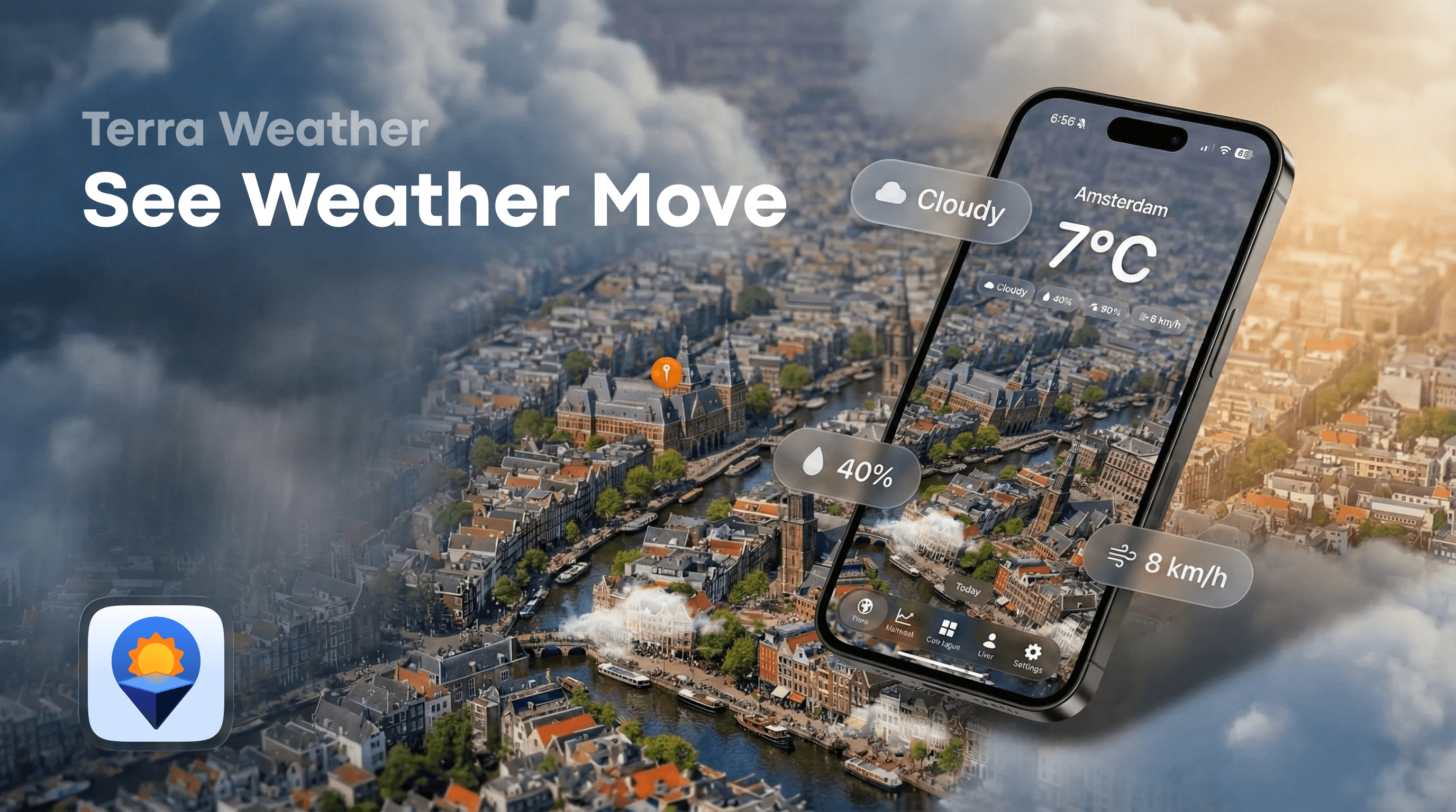 Terra Weather is a weather app that turns forecasts into a visual experience, not just numbers. Its signature feature is a dynamic 3D city diorama that reacts to real conditions like rain, fog, snow, wind, and time of day, so each location feels instantly recognizable.